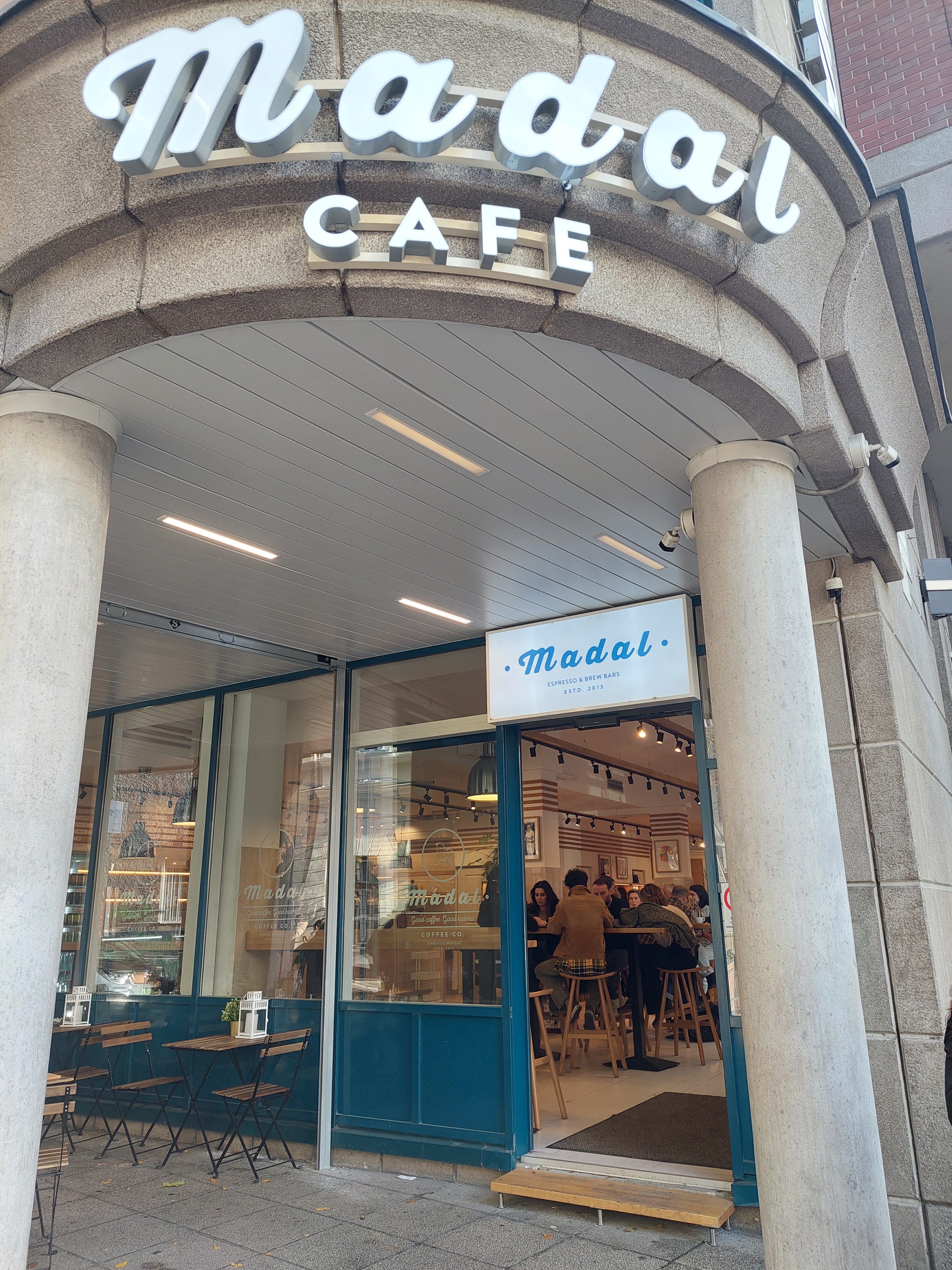 Modern épület. A ház aljában jelenleg a Madal Cafe található.