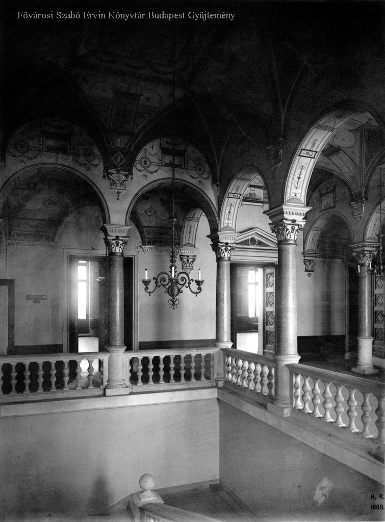 egyesület, épületkép, lépcsőház, lámpa, belső felvétel, 1889