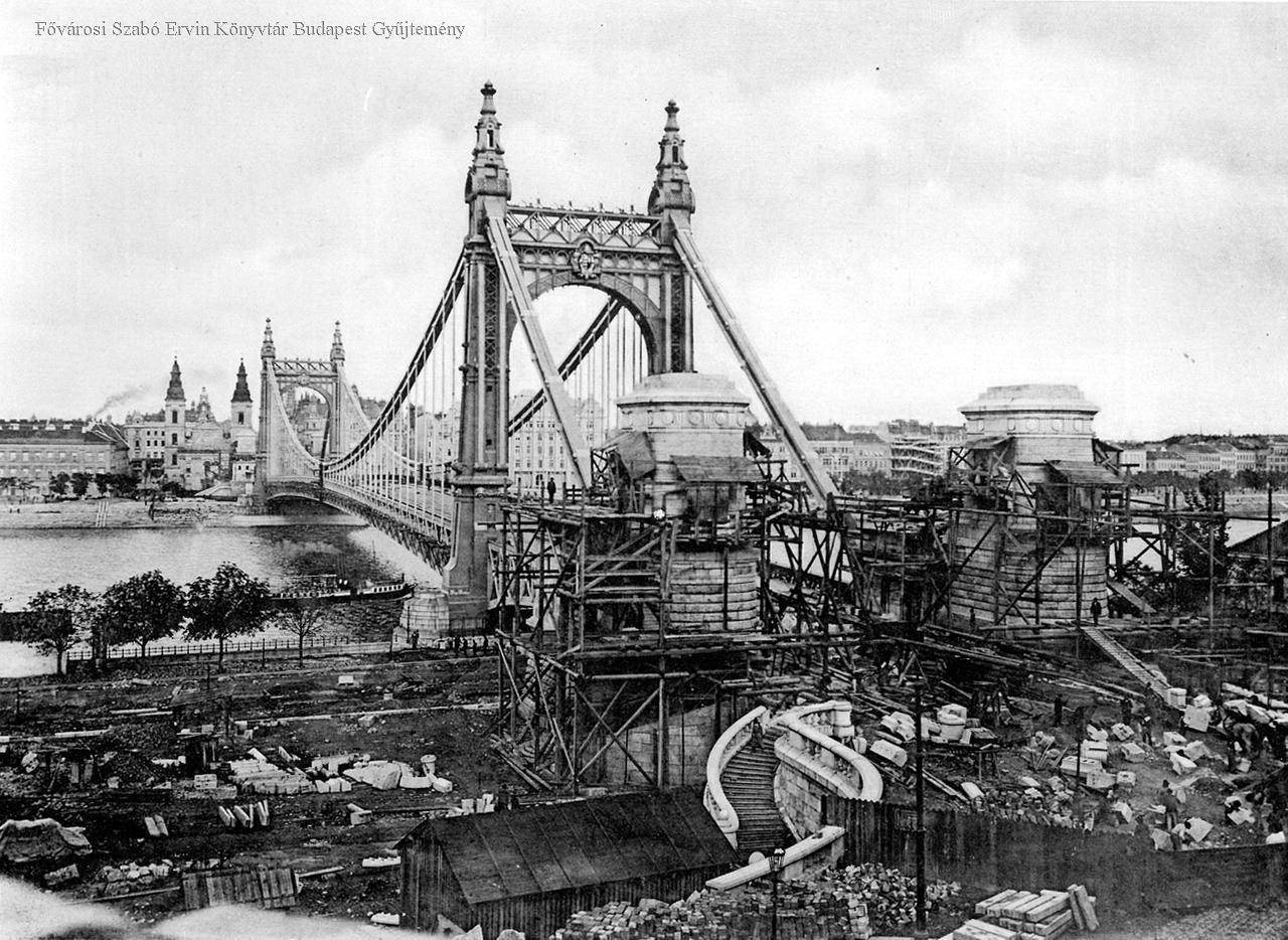 hídépítés, hídfő, szobrászat, állvány, hajó, munkavégzés, lépcső, 1903