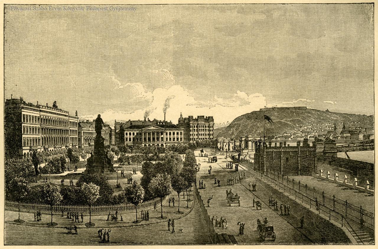 Pesth Place Francois-Joseph, et vue du Blocksberg (mont Saint-Gérard)