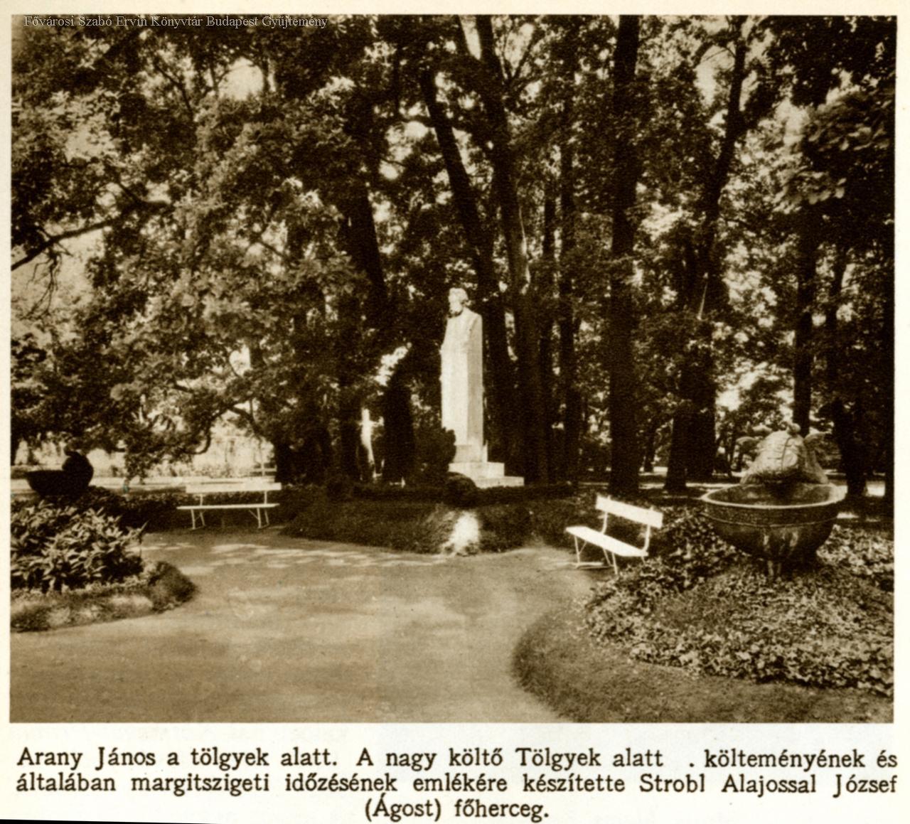 Arany János a tölgyek alatt A nagy költő Tölgyek alatt költeményének és általában margitszigeti időzésének emlékére készítette Strobl Alajossal József (Ágost) főherceg