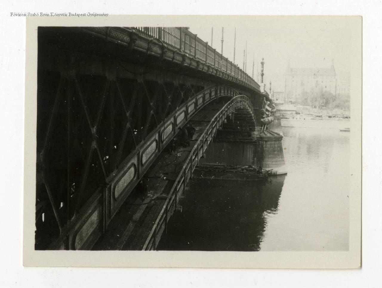 Munkások dolgoznak a budai szárny egyik munkaterületén, Buda felé tekintve