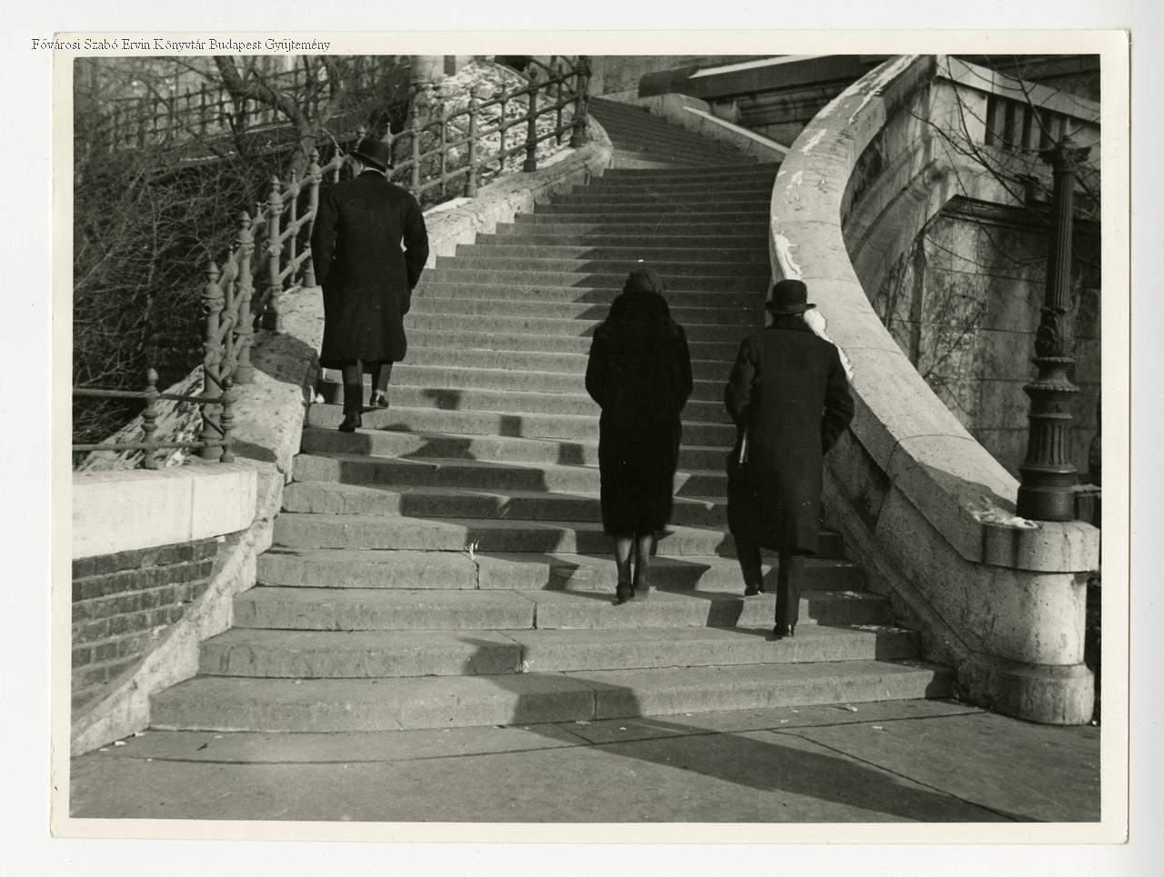 [Járókelők az Erzsébet hídra vezető lépcsőn]
