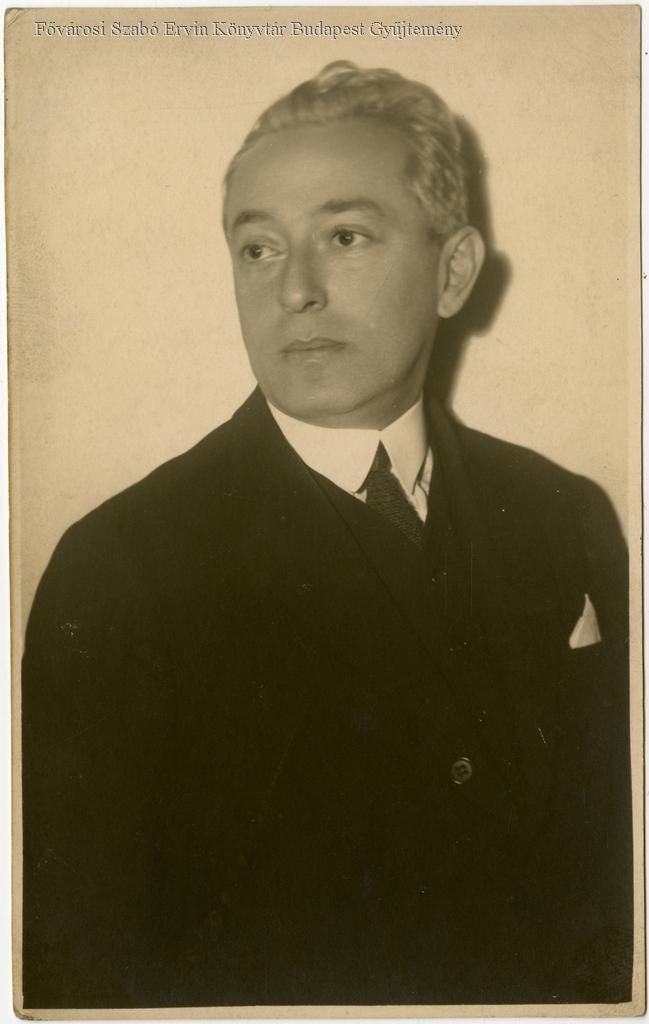 képes levelezőlap, műtermi portré, derékkép, színész, férfi, színházi rendező, 1930 körül