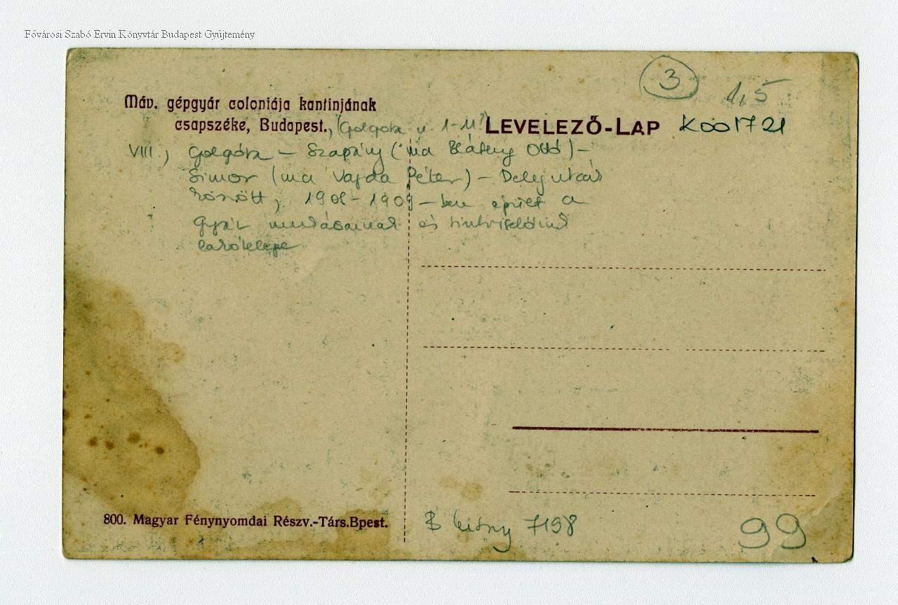 Máv. gépgyár coloniája kantinjának csapszéke, Budapest levelező-lap