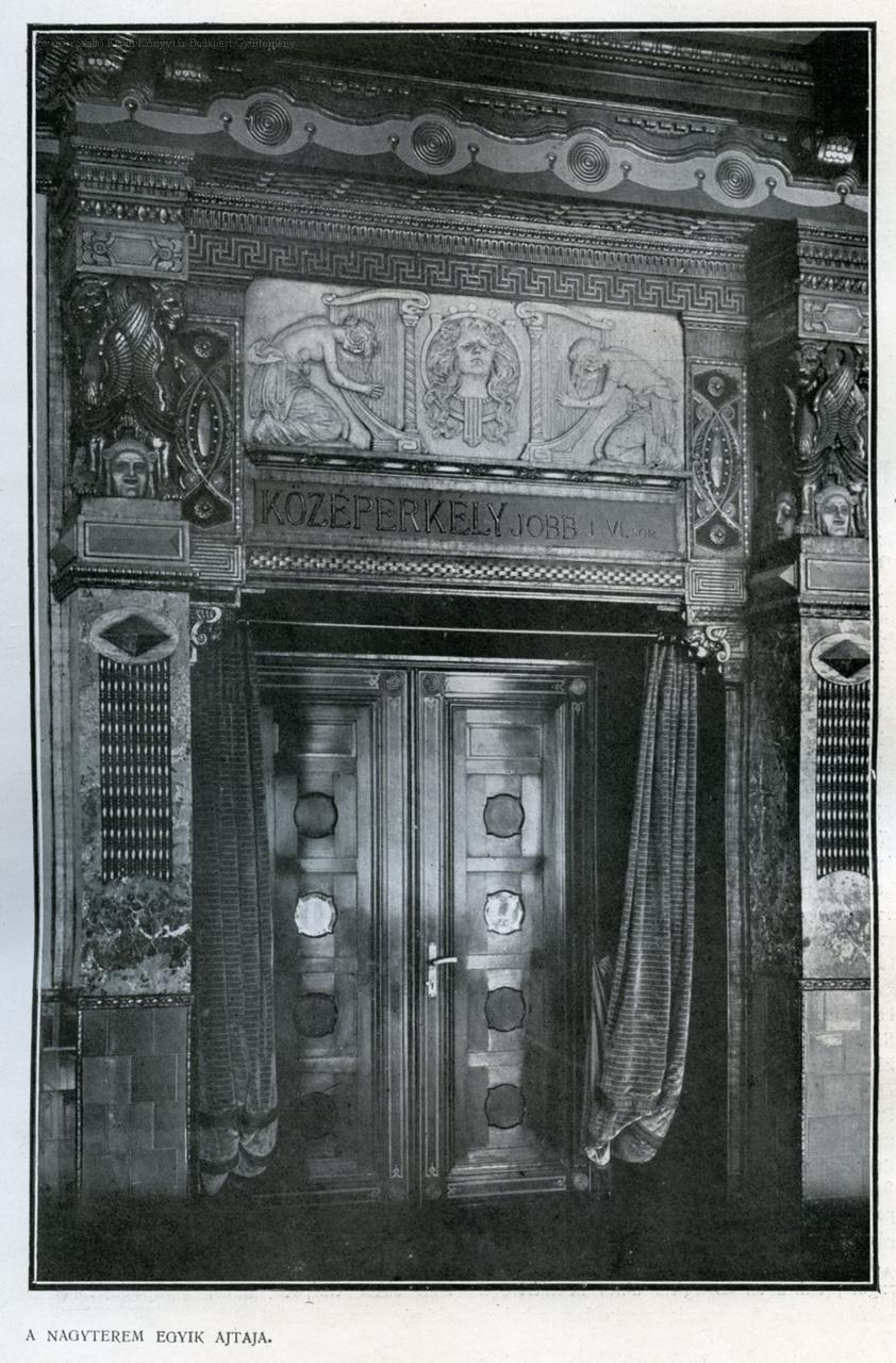 A nagyterem egyik ajtaja. Készítette a Magyar Fém- és Lámpaárugyár