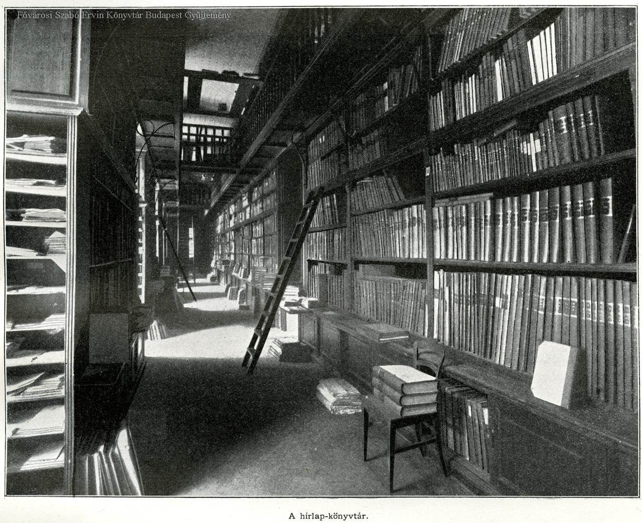1902, könyvtár, hírlap, raktár, polc, létra, belső felvétel