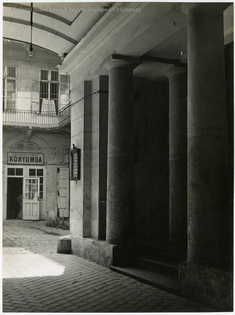 épületkép, udvar, korlát, oszlop, cégtábla, lakónévjegyzék, 1936