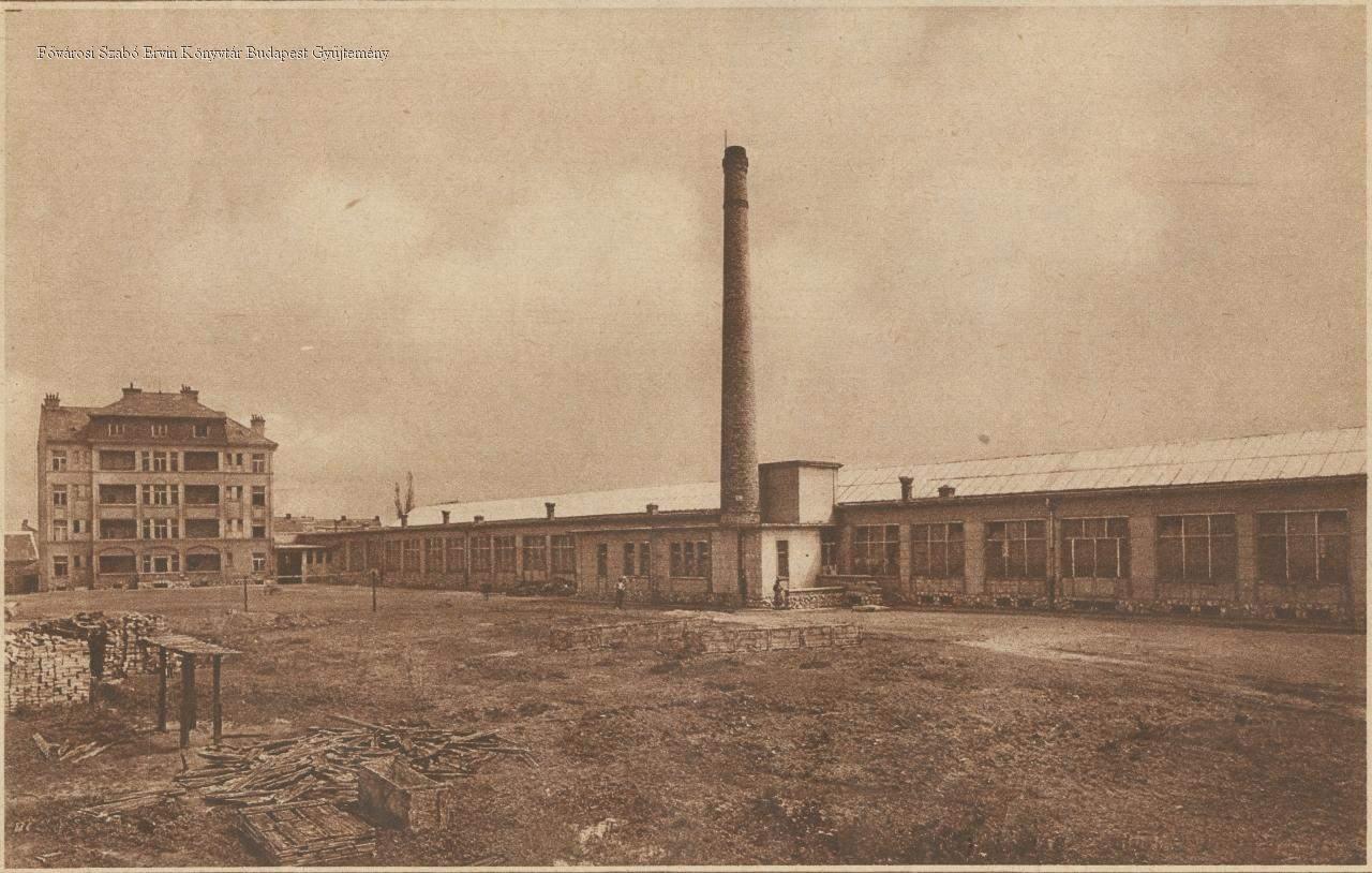 textilipar, kötőipar, ipari épület, udvar, kémény, lakóépület, látkép, 1927