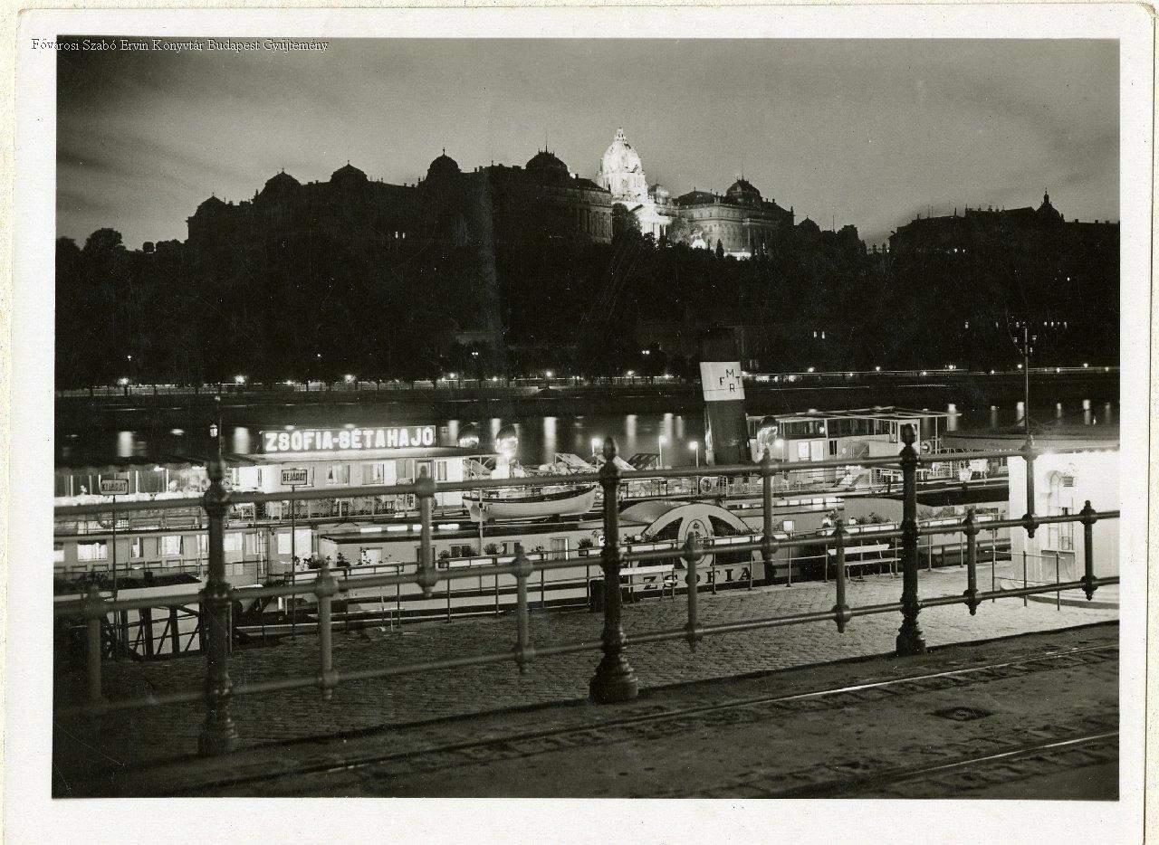 hajó, kivilágítás, korlát, éjszakai felvétel