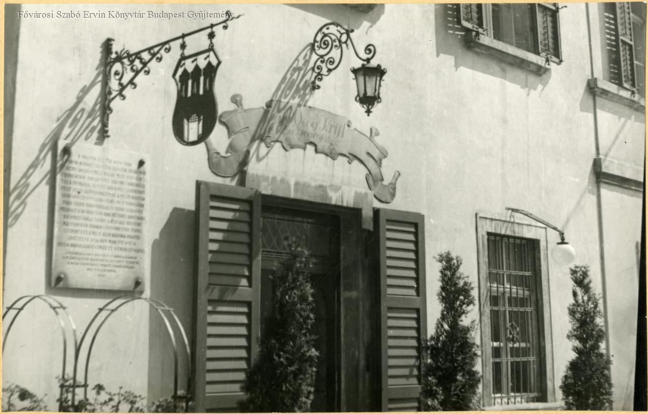 [Krist vendéglő cégére és bejárata]