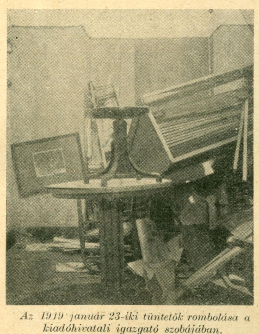 Az 1919 január 23-iki tüntetők rombolása a kiadóhivatali igazgató szobájában