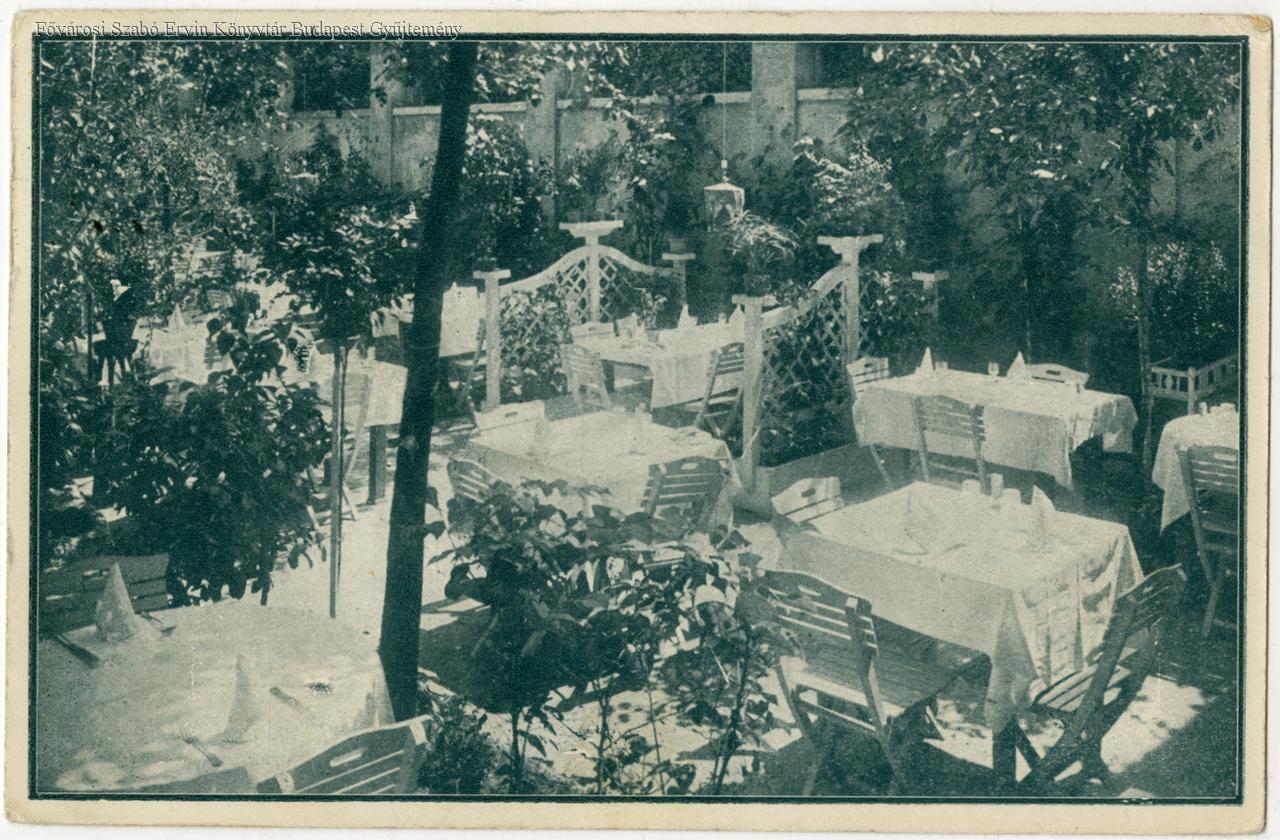 Az üres kerthelyiség. Guttenberger Antal 1925 óta működtette itt éttermét