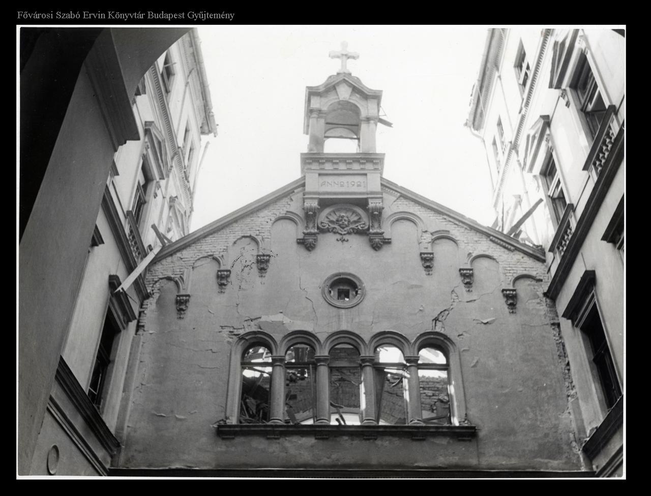épületkép, második világháború, bombázás, légi támadás, romos építmény, háborús kár, amerikaiak, lakóépület, külső felvétel, 1944