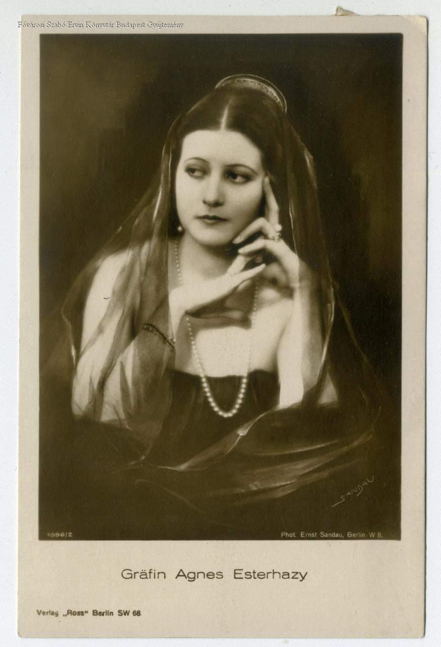 képes levelezőlap, műtermi portré, színész, nő, mellkép, ékszer, fátyol, 1920-as évek