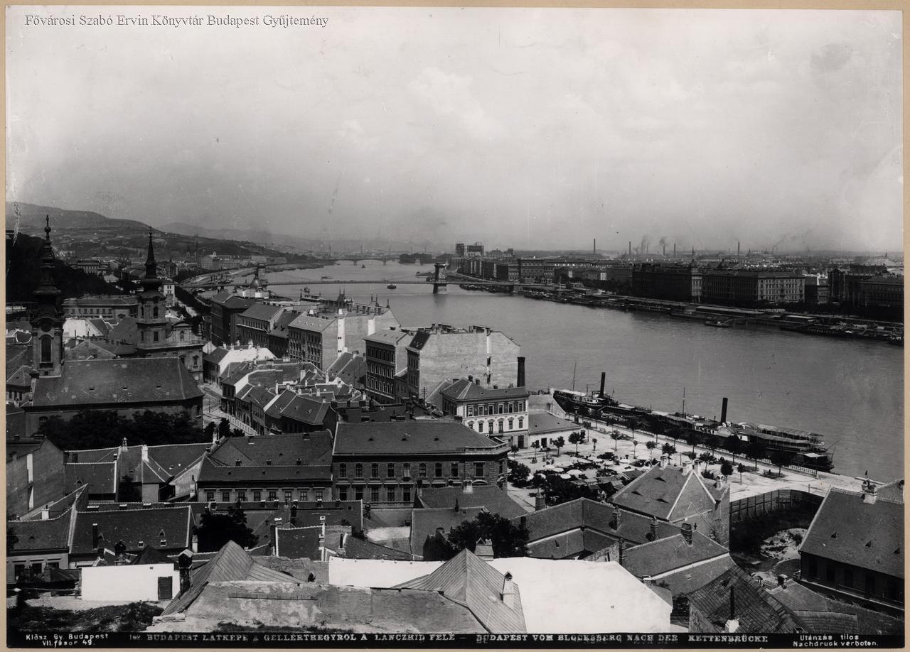 [102.] Budapest látképe a Gellérthegyről a Lánchid felé Budapest vom Blocksberg nach der Kettenbrücke /