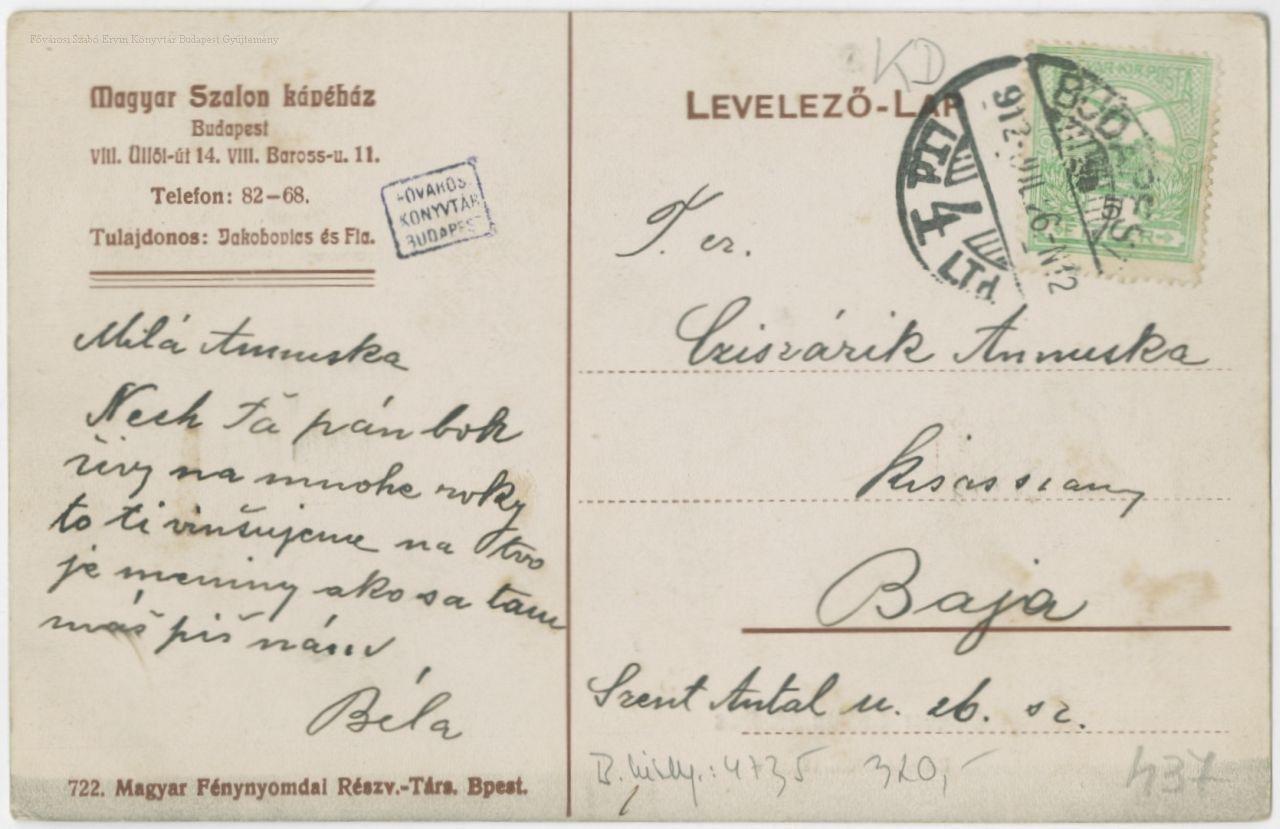 Magyar Szalon kávéház Baross-utcai részlet : levelező-lap