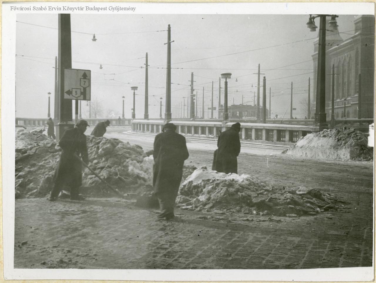 [Hómunkások a Horthy Miklós híd Boráros téri feljárójánál]