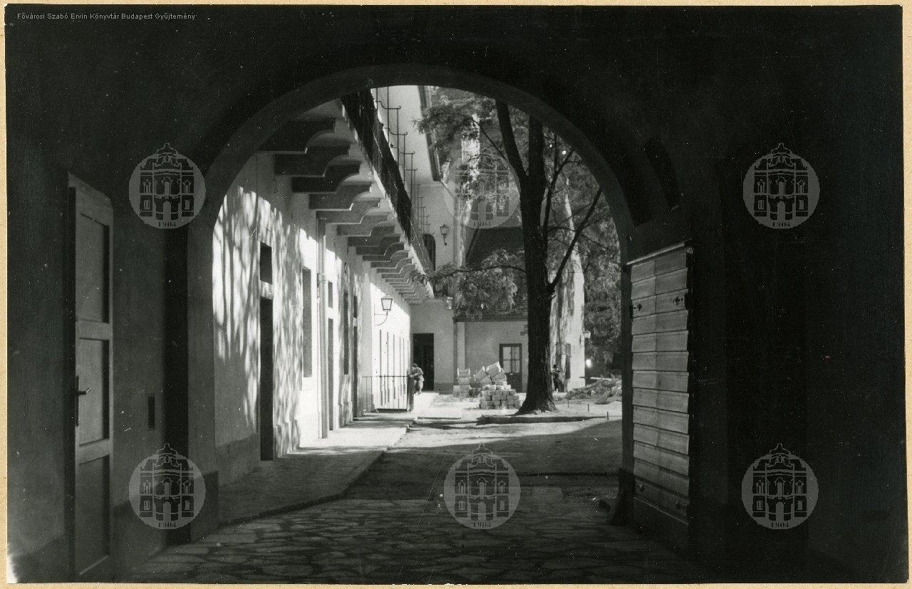 lakóépület, udvar, díszkút, lámpa, kovácsolt vas, 1930-as évek