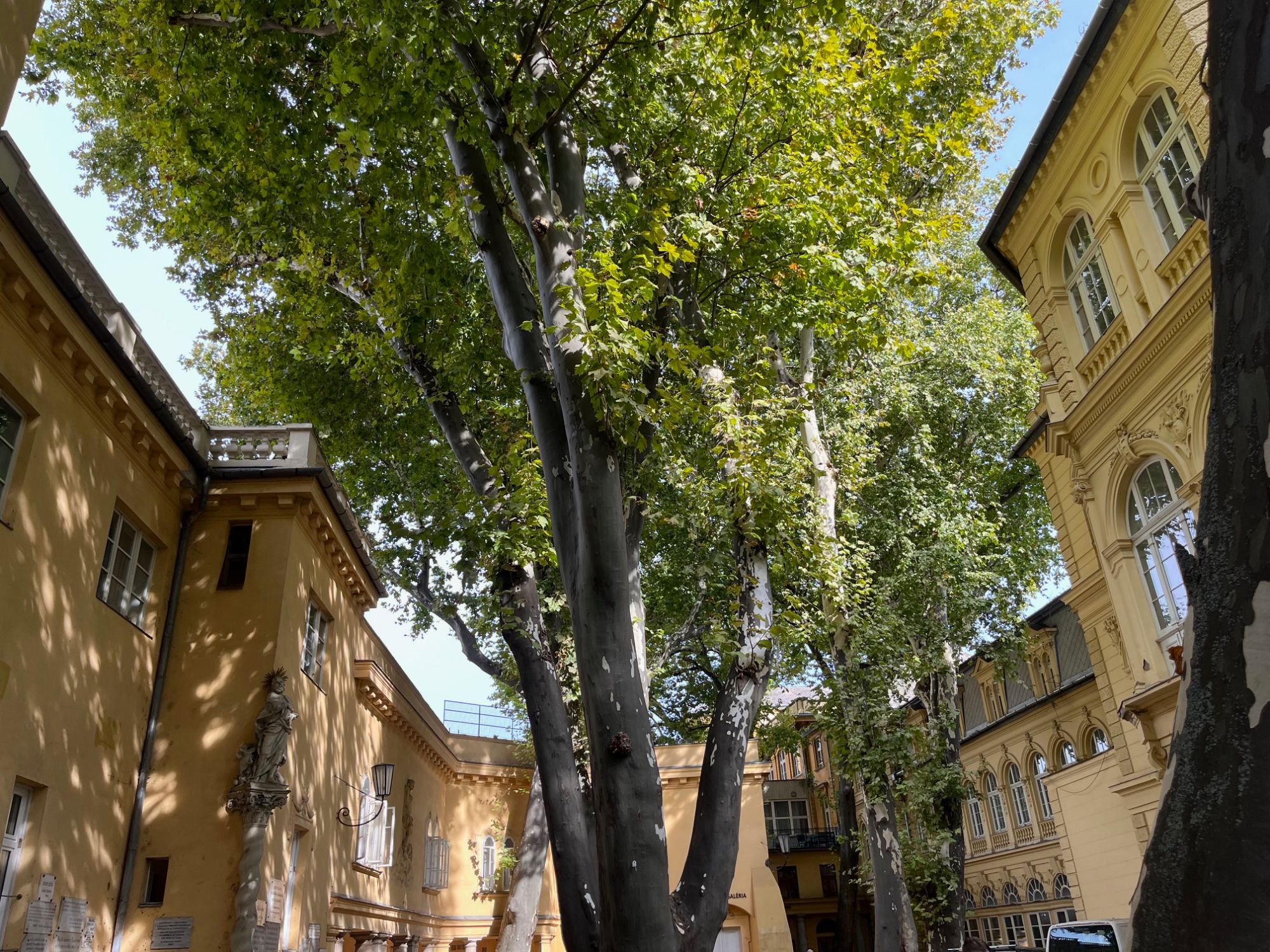 A vendégek kedvelt helye az óriási platánfák árnyékában található gyógyudvarpark.