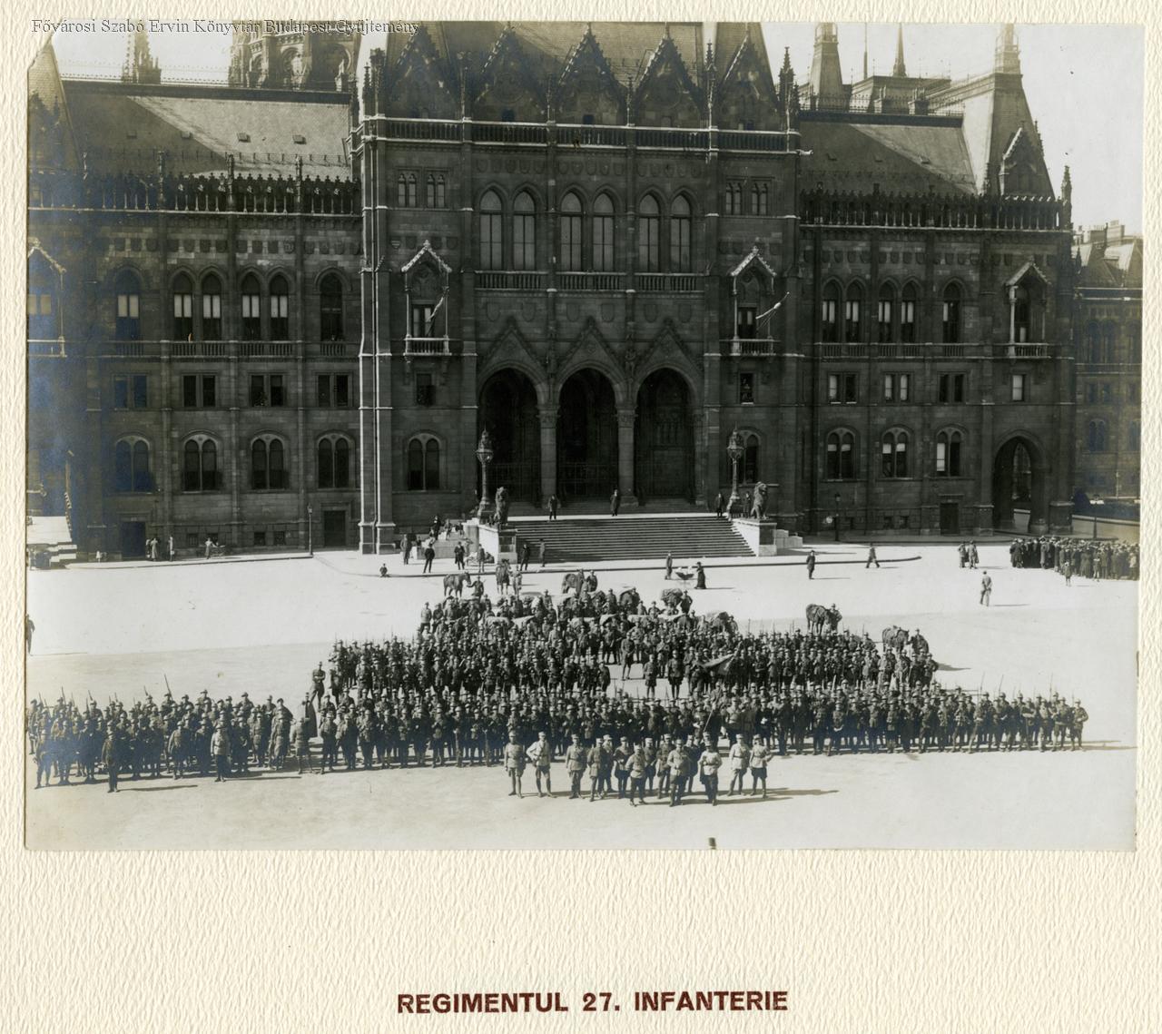 Román megszálló csapatok Budapesten, a Parlament előtt, 1919-ben.