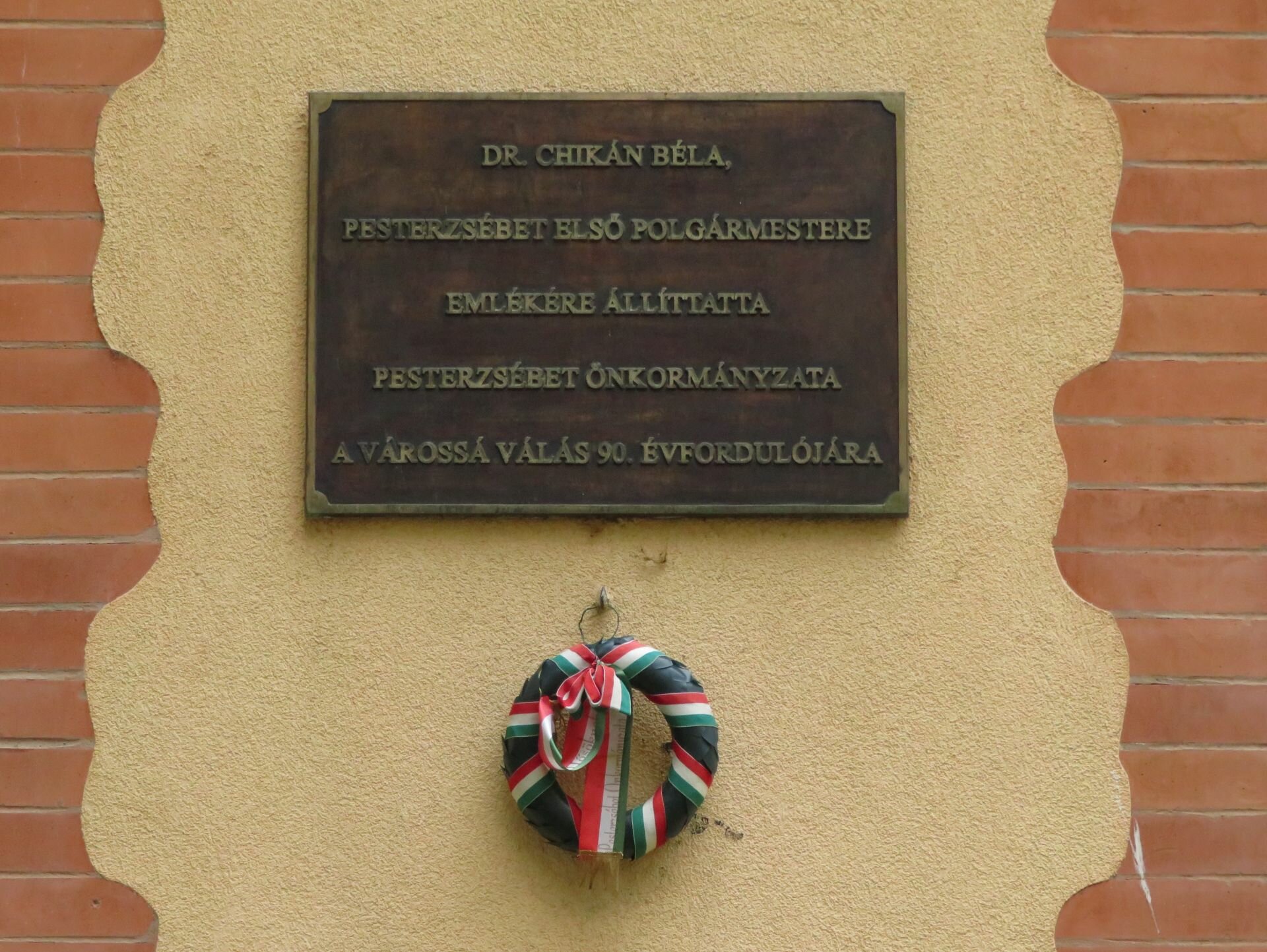 Hol található? A Városháza falán. Az emléktábla a Kossuth Lajos utca - vagy ahogy a helyiek nevezik Kosuti - és a Nagy Győri István utcák találkozásánál, a Városháza falán látható. 2014. augusztus 19-én avatták fel dr. Chikán Béla (1891-1963) tiszteletére, aki Pesterzsébet első polgármester volt. Chikán 1924-től 1939-ig töltötte be ezt a tisztséget. 1924. január 1-jén vált Erzsébetfalva község Pesterzsébet néven várossá. Nemcsak a név és a közigazgatási forma változott, hanem az addigi településvezető bíró helyett polgármestert választottak. Chikán Béla Pesterzsébet egyik legsikeresebb polgármestere volt. Chikán Béla a kereskedelmi iskola után gimnáziumban érettségizett, majd jegyzői tanfolyamot végzett. Tiszaburán és Nagyberkiben lett jegyzőgyakornok. 1909-től Erzsébetfalván lett segédjegyző, majd községi aljegyző. Egyetemet Budapesten végzett, ahol államtudományi doktori diplomát szerzett. Az I. világháború idején besorozták, 1914-től 43 hónapon keresztül a szerb, olasz, orosz fronton harcolt, kétszer megsebesült és több kitüntetést is kapott. Tüzérhadnagyként szerelt le. A háború után Kispesten rendőrfelügyelő, majd rendőrségi fogalmazó lett. Erzsébetfalvai lakosként több helyi asztaltársaságnak volt tagja, amelyek segítették a polgármesterré választását. Szembesülnie kellett a város fejlesztésével. Merész és bátor előrelátással Speyer amerikai dollárkölcsönt vett fel, amiből a legsürgetőbb fejlesztéseket (közművesítés) tudta elkezdeni. Később az Amerikai Egyesült Államokba utazott, a külföldön élő magyarok Kossuth szobrának avatása ügyében. Személyiségéről, határozott egyéniségéről ellentmondásos hírek láttak napvilágot. Nagyon szerette a sportot, szívesen lovagolt, de arról pletykáltak a korabeli emberek, hogy ha valaki nem tért ki az útjából, amikor lovagolt, akkor “bikacsökkel vágott rá” a ló hátáról. A korabeli újságok tudósítása szerint a megrendeléseket – vallástól, felekezettől függetlenül – azoknak adta, akik legolcsóbban dolgoztak. 1939-ig töltötte be tisztségét. Pest megye nyilas alispánja, Endre László eltávolíttatta hivatalából. A második világháború utáni években Dél-Budára internálták. Mivel jó erőben volt, így 1950-ben keszonmunkásként helyezkedett el, s kitanulta a szakmát. Nyugdíjba vonulása után gyümölcsösök ápolásával foglalkozott. A farkasréti temetőben helyezték örök nyugalomra.