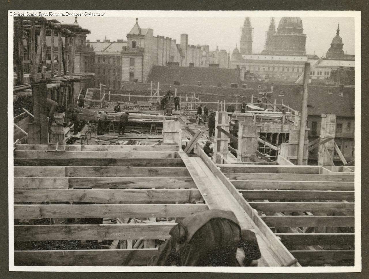 [A Fővárosi Közmunkák Tanácsa székházának építkezése] Betonvasalások, állványok /