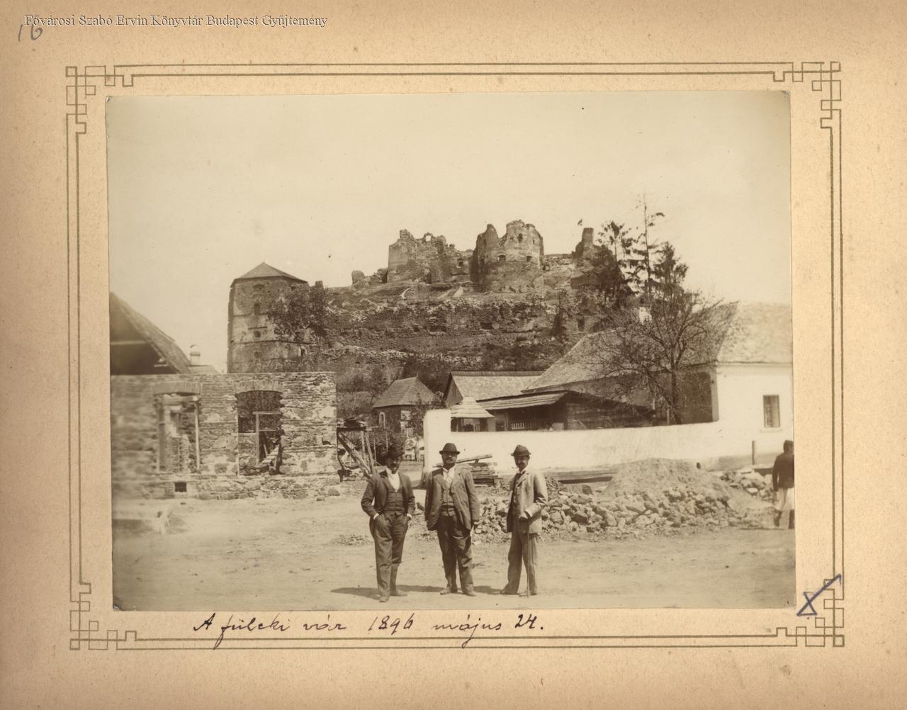 vár, romos építmény, falusi ház, férfi, amatőr fénykép