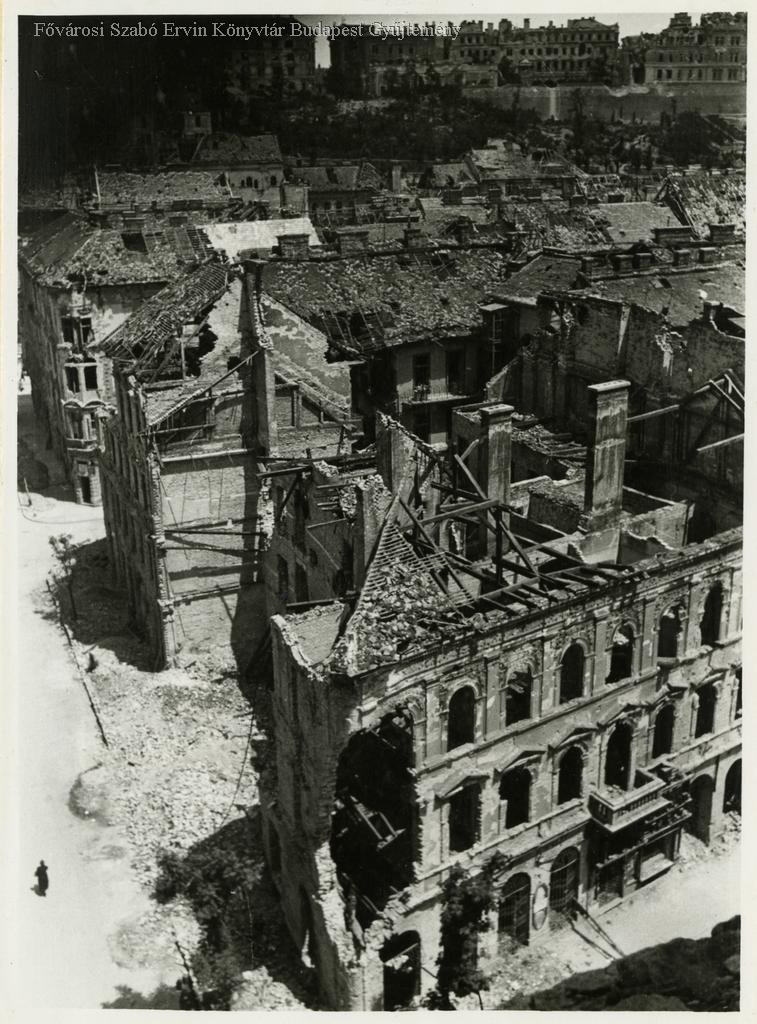 Kilátás a Krisztina téri templom tornyából. Előtérben a Krisztina körút - Roham utca sarok.