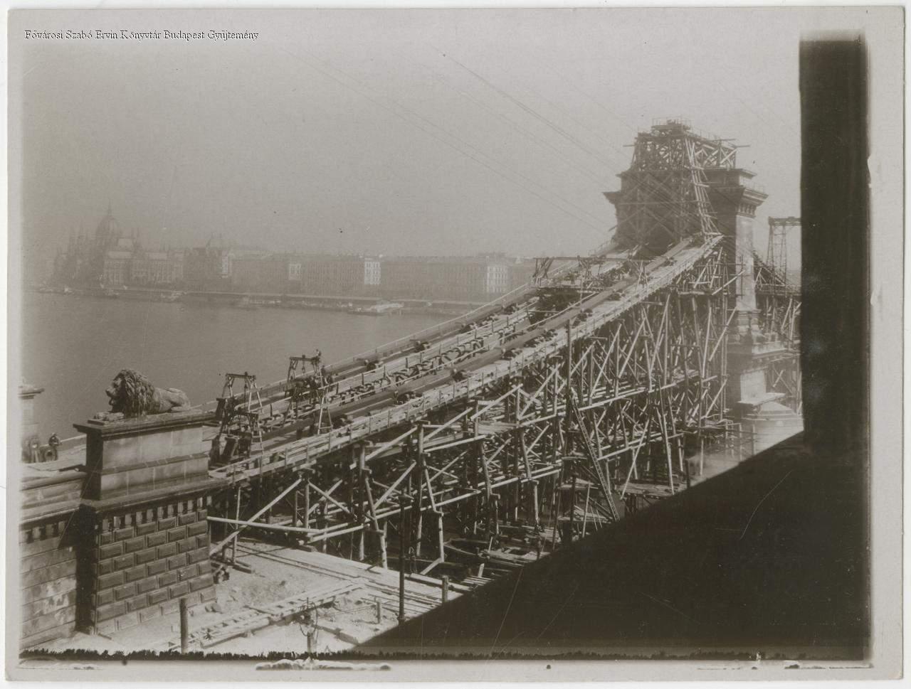 A Lánchíd átépítése, vasszerkezetének megerősítése. Teljes rekonstrukció: 1914. február 3-tól 1915. november 26-ig.