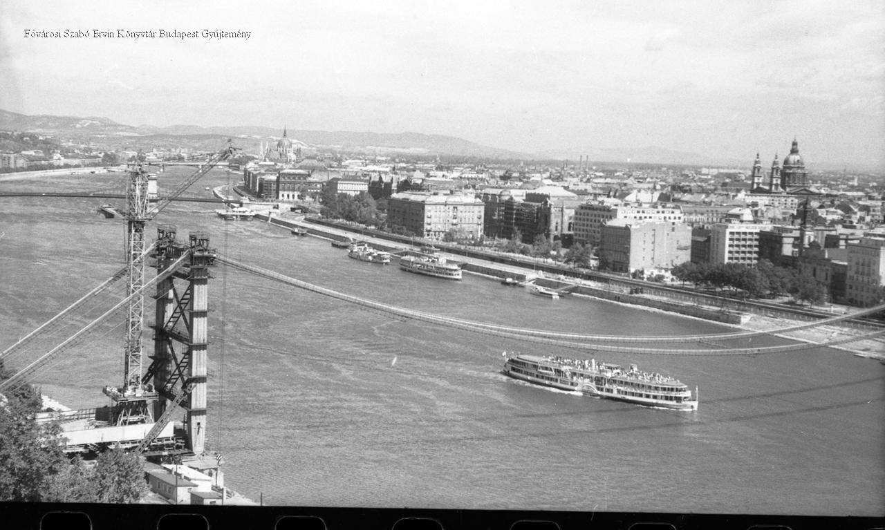 [Az épülő Erzsébet híd a Gellérthegyről]