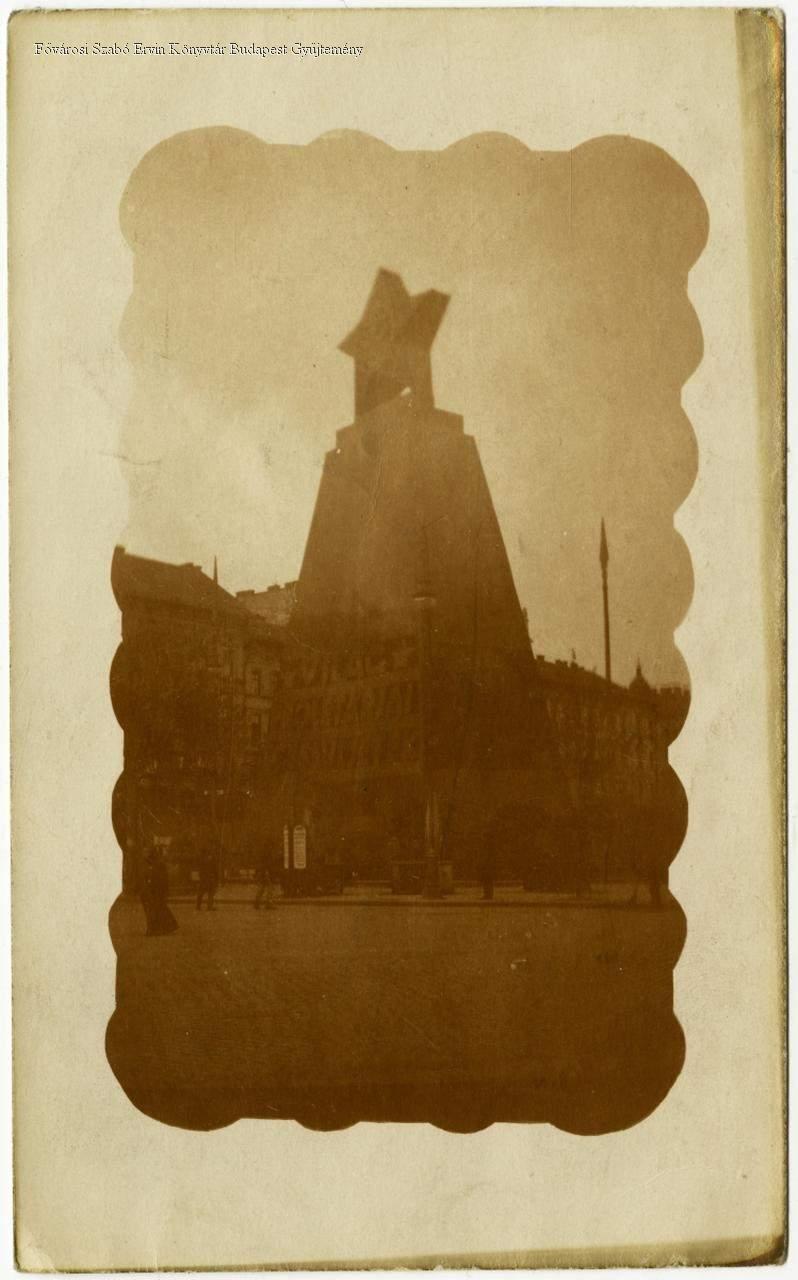 [Baross Gábor vörös csillagos dekorációval letakart szobra, 1919. május 1.]