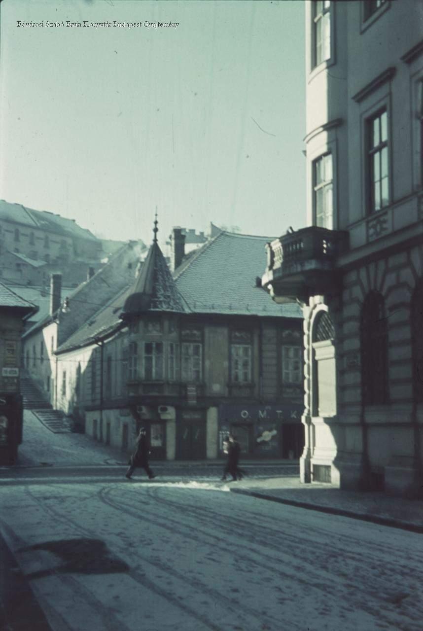 utcakép, lakóépület, üzlet, torony, erkély, ember, tél, , 1937-1944