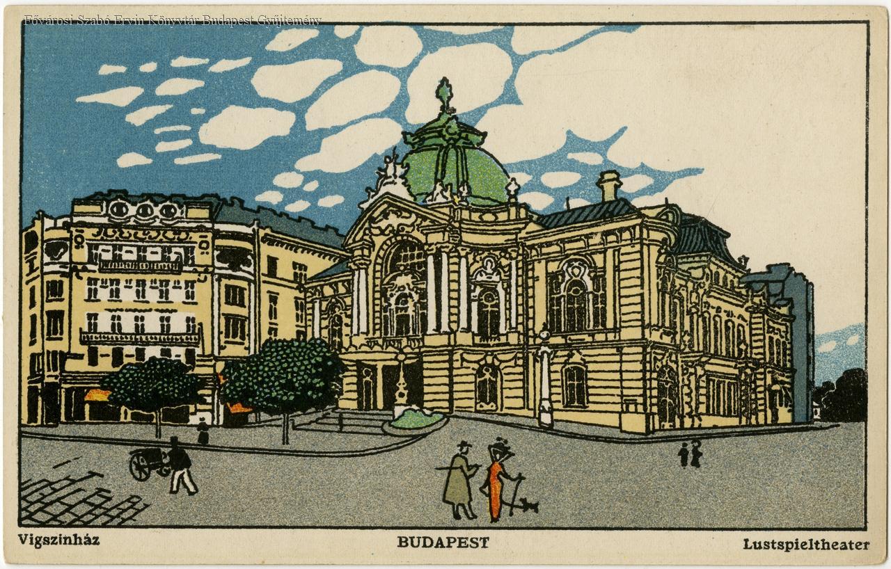 színház, szecesszió, épületkép, képes levelezőlap, 1910 körül, századelő