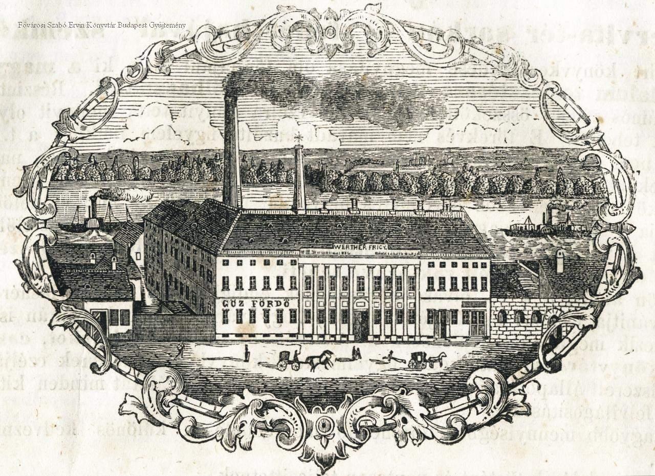 malomipar, élelmiszeripar, gőzmalom, ipari létesítmény, fürdő, látkép, 1859