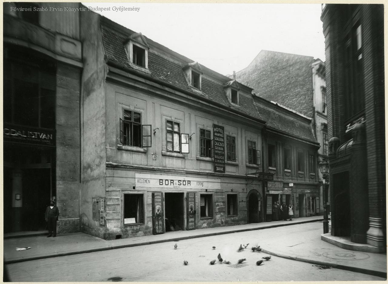 szálloda, cégtábla, kirakat, italbolt, lámpa, épületkép, 1914 körül