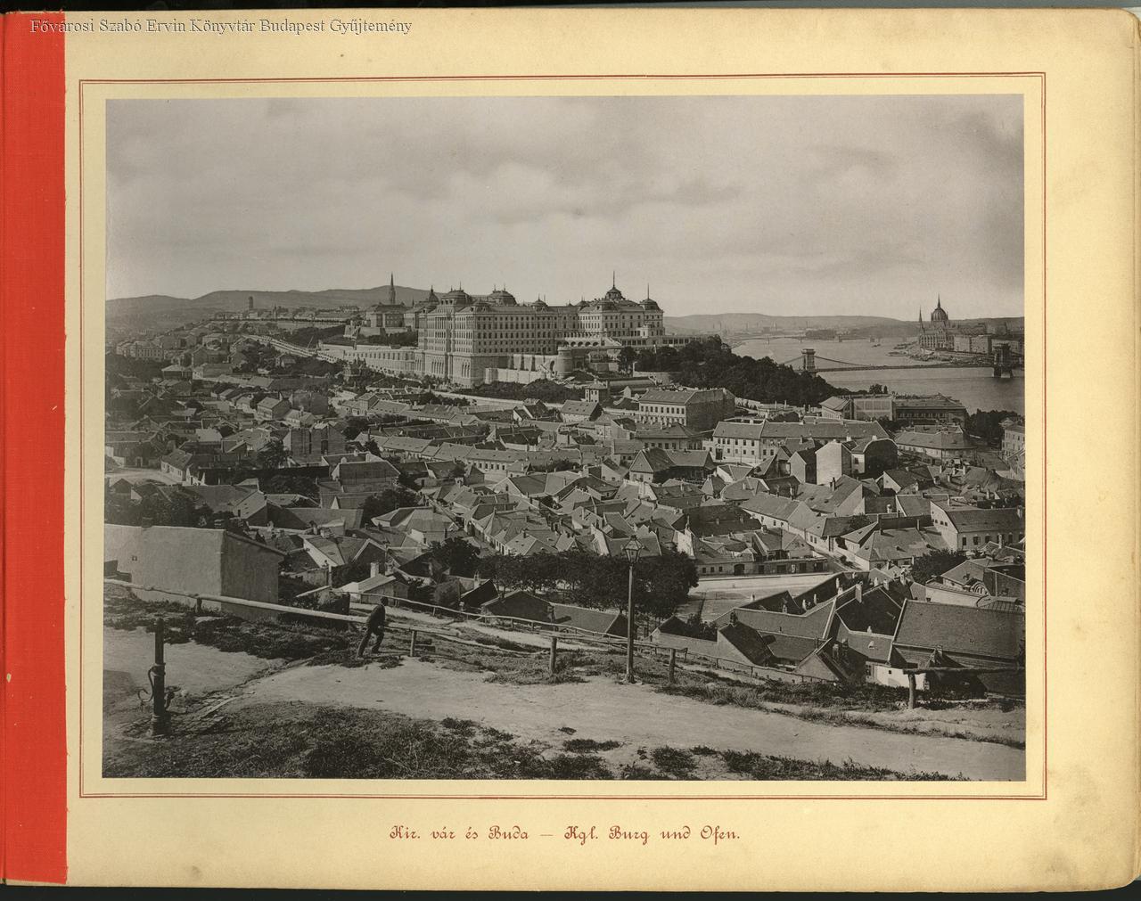 látkép, királyi palota, lakóépület, híd, kút, 1890-es évek