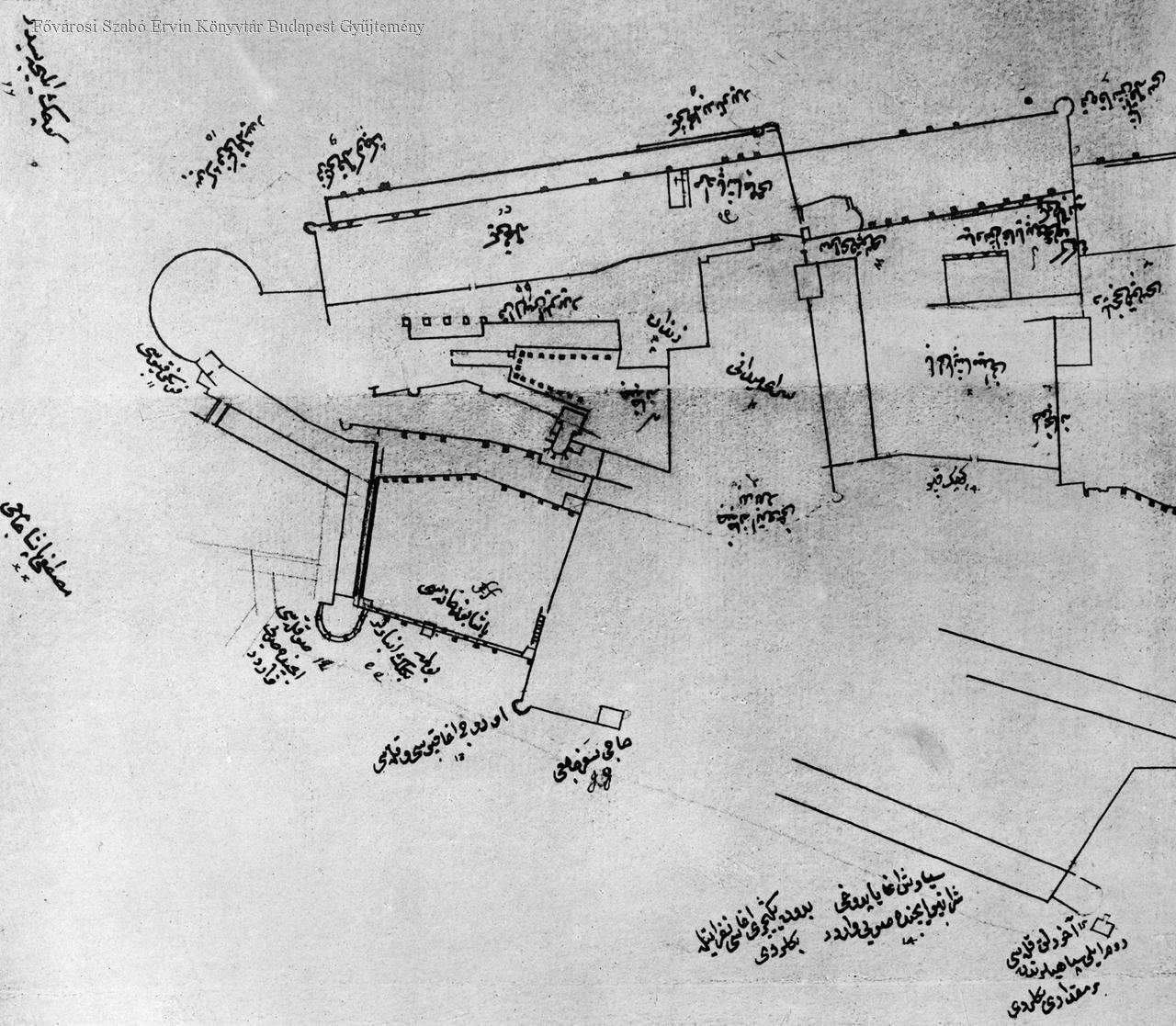 A budai királyi vár térképe a Marsigli-féle zsákmány Bolognában őrzött török fölvételének másolata