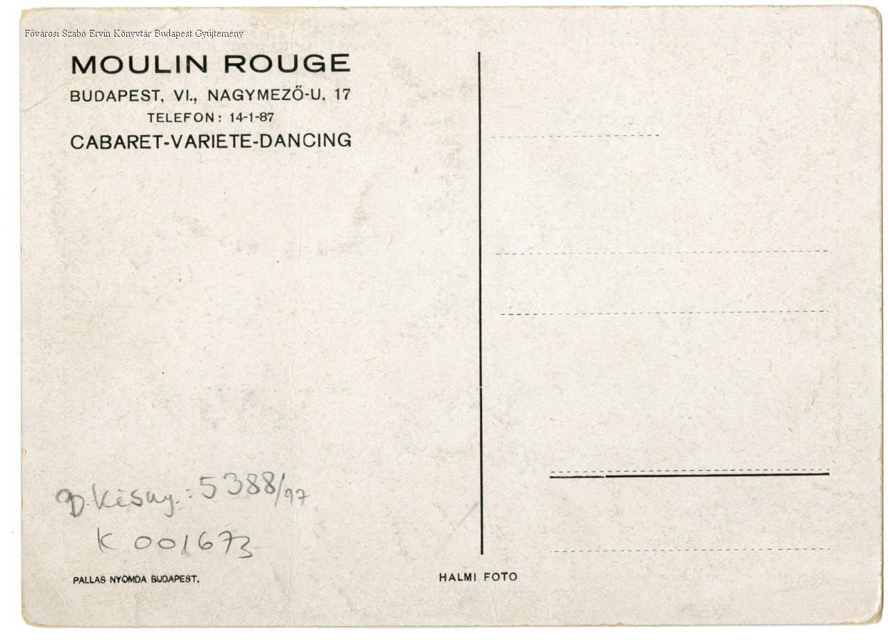 éjszakai mulató, nézőtér, asztal, teríték, zongora, képes levelezőlap, belső felvétel, 1930-as évek