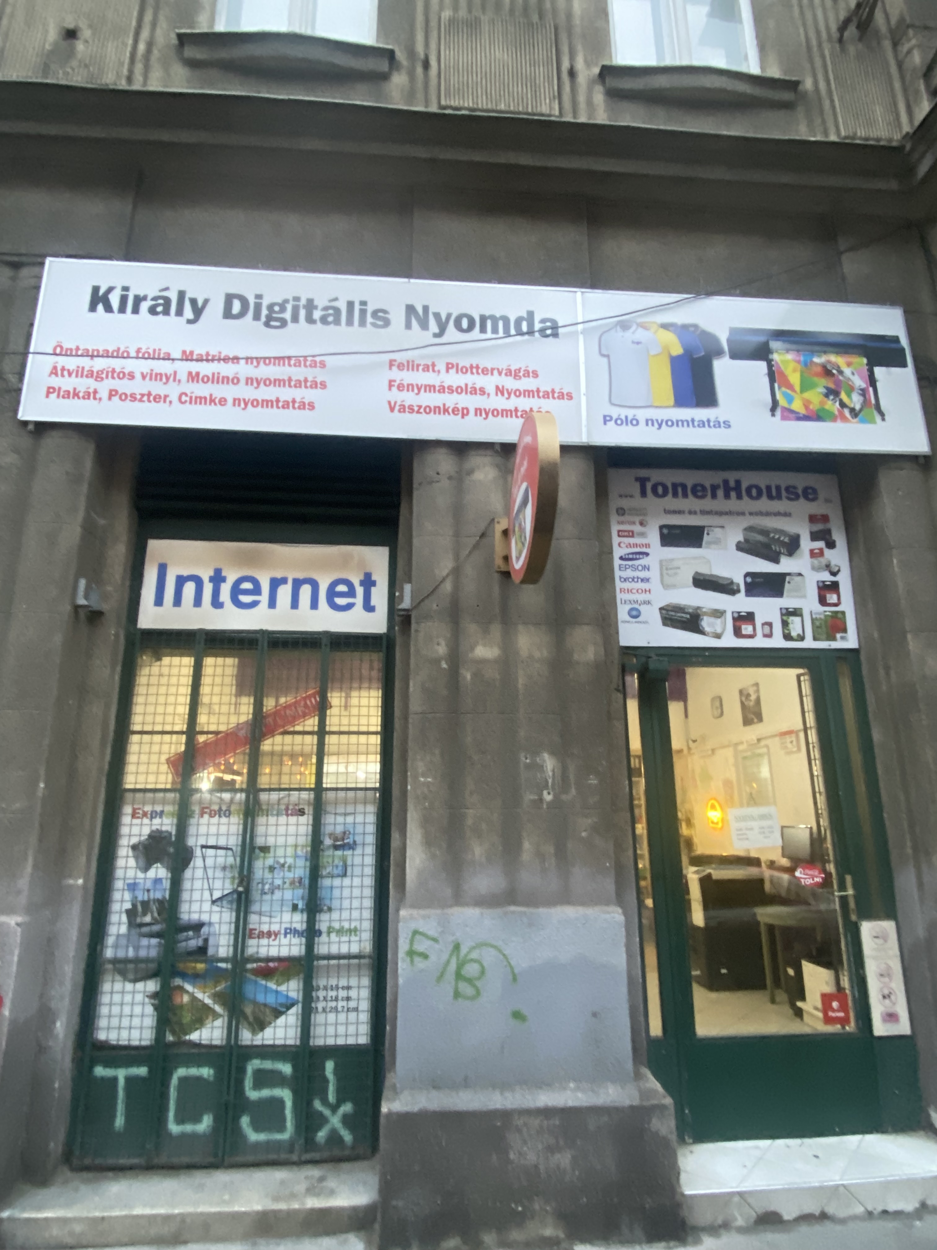 Az épület Király utcai rövidebb főoldalán a földszinti sarokforduló utáni két ablak még a Hegedű utcai oldalról megközelíthető önkormányzati helyiséghez tartozik. Az ezt követő két nyílászáró a Király Digitális Nyomda (Basrawi Kft) bejárata. A Király utcai főbejárat másik oldalán Röltex néven (Röltex Kft.) textil kereskedés működik, melynek bejárata ma a harmadik ablaknyílás helyén van.