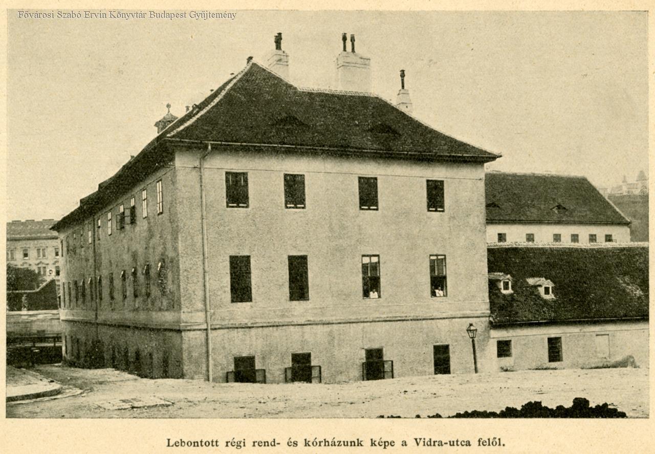 Lebontott régi rend- és kórházunk képe a Vidra-utca felől