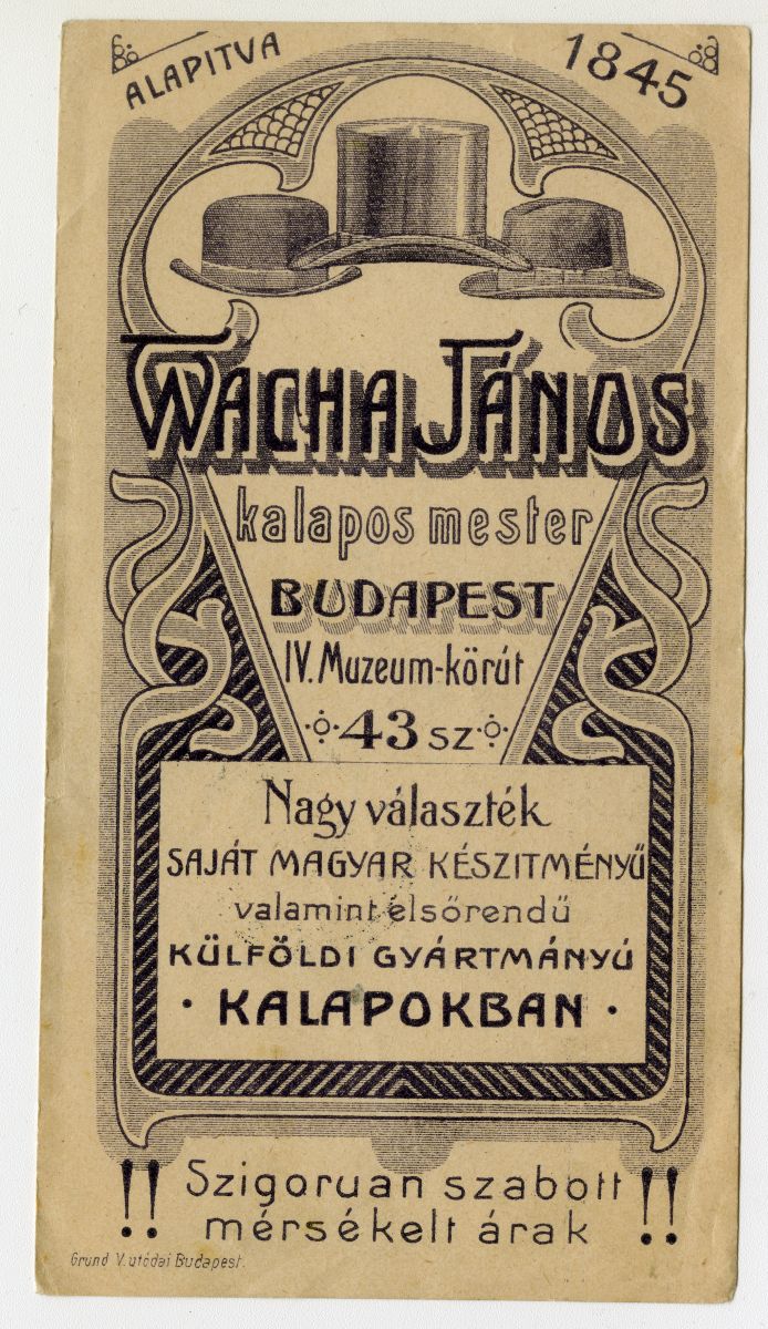 férfidivat, kalap, fejfedő, üzlet, kalapos, kalapos ipar, cilinder, keménykalap, reklámnyomtatvány, kisnyomtatvány, aprónyomtatvány, számolócédula