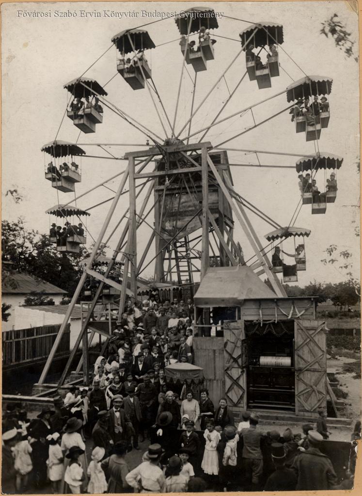 Nagy tömeg, férfiak, nők, gyerekek, elsősorban az alsóbb néprétegből az óriáskerék bódéjánál. Gépzongora