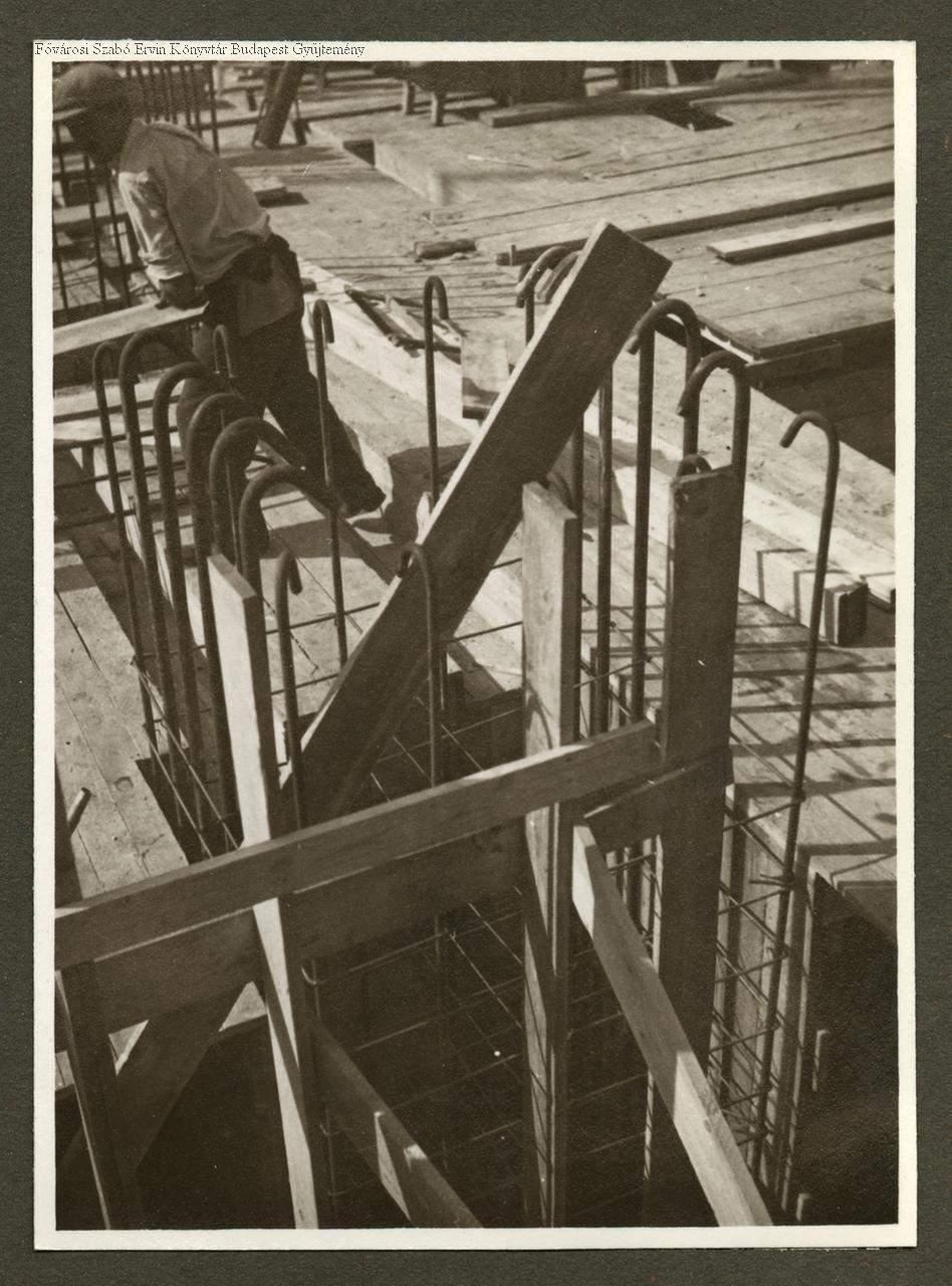 [A Fővárosi Közmunkák Tanácsa székházának építkezése] [Betonzsaluk, állványok között] /