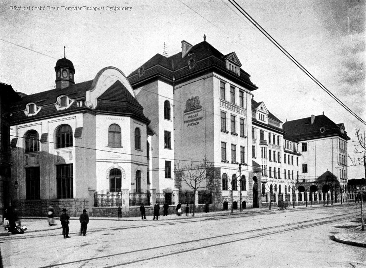 iskola, homlokzat, középfokú oktatás, szakképzés, épületkép, külső felvétel, 1913