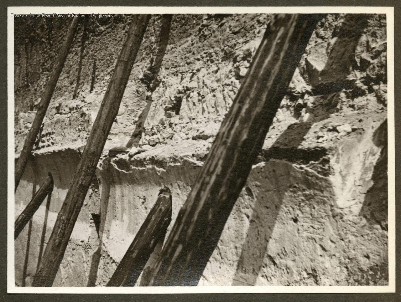 [A Fővárosi Közmunkák Tanácsa székházának építkezése] [A szomszédos házfal ideiglenes kitámasztása] /