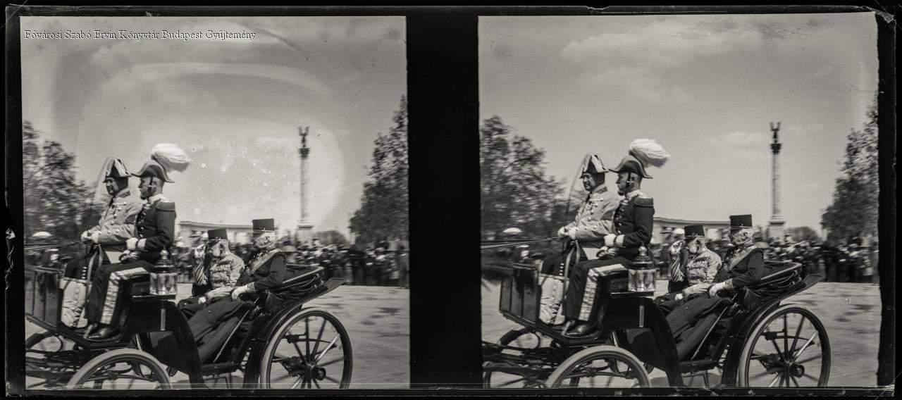 A hintóban, az uralkodó mellett Eduard von Paar gróf (1837-1919) osztrák vezérezredes, aki éveken át a király első szárnysegédje volt.