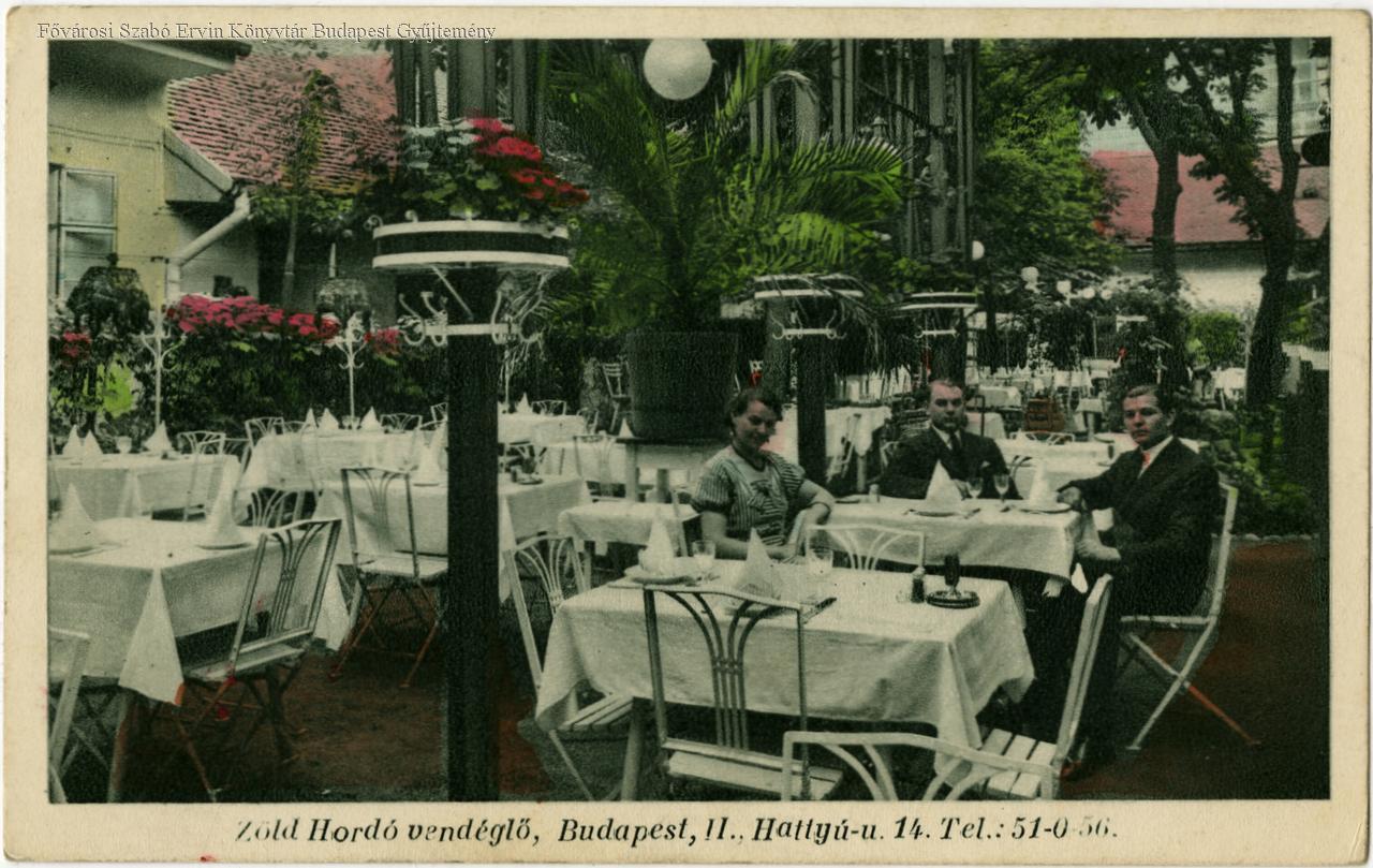 Budapest, II. Hattyú u. 14. Zöld hordó vendéglő = Gasthaus zum grünen Fass