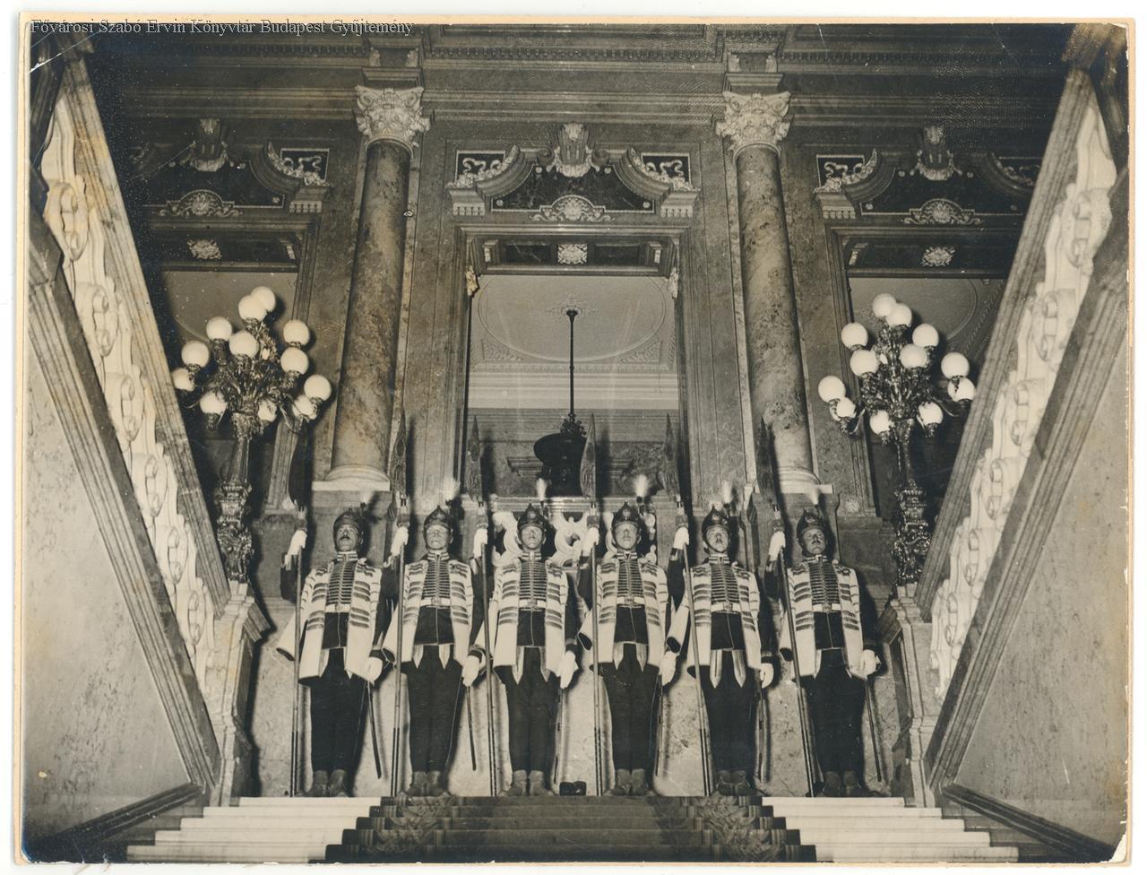 testőr, kormány, Horthy-korszak, egyenruha, zászló, vár, belső felvétel