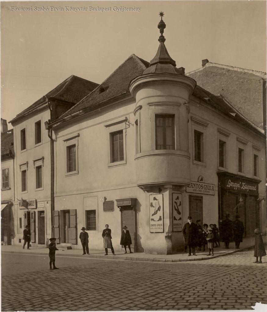 üzlet, lakóépület, ember, cégtábla, gyermek, ruházat, állatorvos, rendelőintézet, mészáros, emléktábla, utcakép, 1900 körül